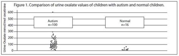 Researcher Susan Owens found that those with autism have five to six times the normal amount of oxalates in their urine.